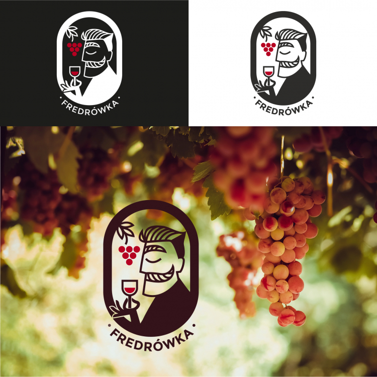 Dzień dobry, Propozycja logo, minimalistyczne z wizerunkiem Fredry degustującego wino. Logo nawiązuje do enoturystyki o której Państwo wspominają. Będę wdzięczna za komentarz. Pozdrawiam serdecznie, Anna