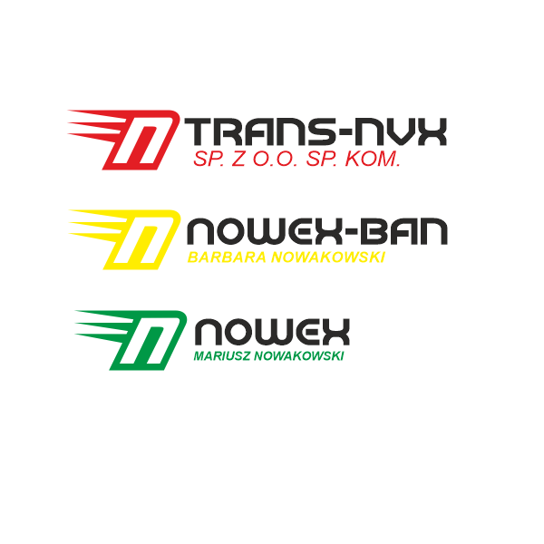 Nazwa NOVEX, proszę zamienić W na V! Kolorystycznie: Trans-Nvx - proszę przypisać kolor żółty, NOVEX-BAN - kolor czerwony.NOVEX kolor niebieski. Proszę wyróżnić literę X we wszystkich trzech firmach. Dzięki.