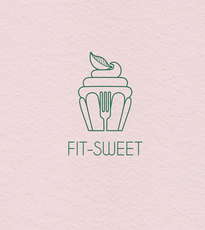 Minimalistyczne logo z muffinką jako symbolem cukierniczym,listkiem zamiast klasycznej wisienki w nawiązaniu do zdrowego,roślinnego zamiennika i mały widelec dla urozmaicenia kompozycji :)