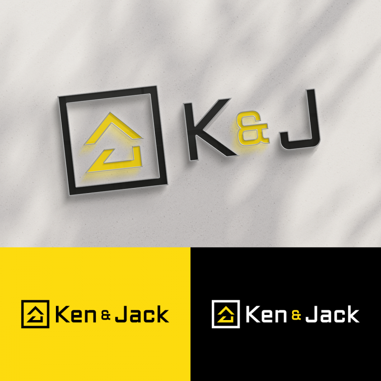 K&J - Sygnet to litery K + J (Litera K to jedynie prawa część litery K. Litery postawione na boku tworzą domek symbolizujący branżę budowlaną.
