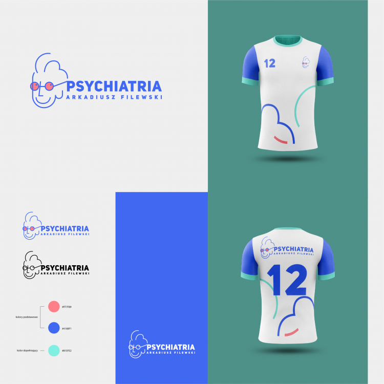Za główny cel postawiłam sobie ocieplenie wizerunku psychiatry, żeby wizyta nie kojarzyła się z przerażającym przeżyciem tylko z uśmiechem i zrozumieniem, ma pomóc ujrzeć wszystko w lepszym świetle (stąd pomysł na "różowe okulary". Dobrana typografia ma wzbudzać zaufanie, ale nie kojarzyć się z burą plakietką na drzwiach. Kolor niebieski jest kolorem spokoju i zaufania, a różowy akcent ma wlewać parę kropel radości. Sam rysunek jest prosty, można by powiedzieć, że dziecięcy - ma wzbudzić uśmiech i uspokoić nieco pacjenta przed wizytą.