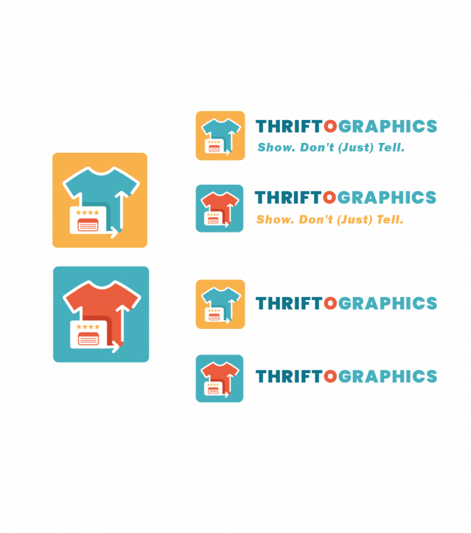 Tekst po prawej, prosze zblizyc do siebie THRIFTOGRAPHICS i slogan.