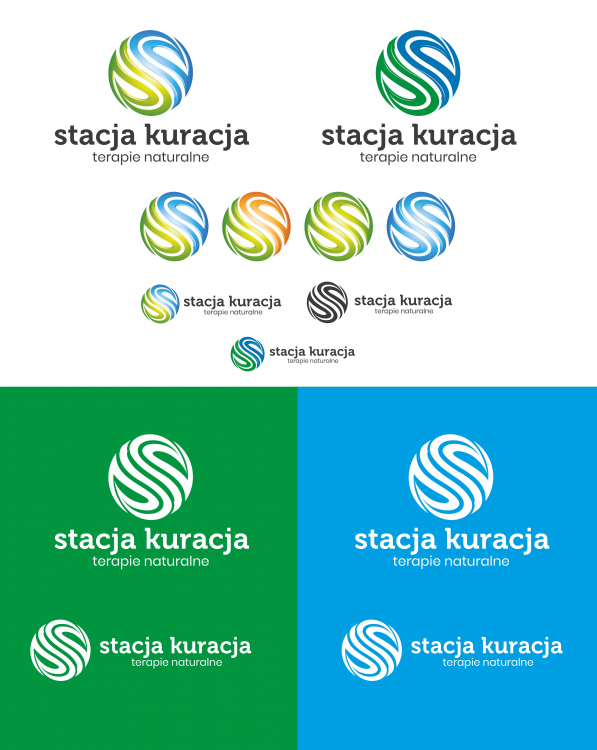Kształt i dynamika: Okrągły kształt logo symbolizuje cykliczność natury i życia. Dynamiczne, spiralne linie wewnątrz kuli sugerują ruch, wzrost i energię życiową. Kolorystyka: Zielony kolor reprezentuje naturę, wzrost, odnowę i zdrowie. Niebieski symbolizuje wodę, czystość, spokój i równowagę. Połączenie tych kolorów tworzy harmonijną całość, która kojarzy się z naturalnymi, zdrowymi elementami. Gradacja kolorów: Płynne przejście od zielonego do niebieskiego może symbolizować połączenie ziemi (natura) i nieba (życie duchowe), tworząc pełny obraz zdrowia. Symbolika: Kształt logo może również przypominać liść lub kroplę wody, co dodatkowo wzmacnia skojarzenia z naturą i życiem. Prostota i nowoczesność: Minimalistyczny design sprawia, że logo jest łatwo rozpoznawalne i zapamiętywalne, co jest kluczowe dla skutecznej identyfikacji wizualnej. Logo skutecznie łączy w sobie elementy symbolizujące zdrowie (dynamika, harmonia), naturę (kolory, kształty) i życie (ruch, energia), tworząc spójny i atrakcyjny wizualnie przekaz, idealnie pasujący do koncepcji naturalnych terapii i holistycznego podejścia do zdrowia. W przypadku gdyby potrzebne były jakieś zmiany lub przygotowanie wizualizacji na różnych materiałach proszę o komentarz. Dziękuję