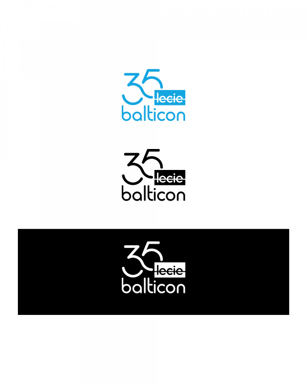 Przesyłam znak graficzny z okazji 35-lecia firmy Balticon, przygotowany zgodnie z wytycznymi dotyczącymi zachowania oryginalnego fontu i kolorystyki. Znak jest dostępny w trzech wersjach kolorystycznych: niebieskiej, białej i czarnej.