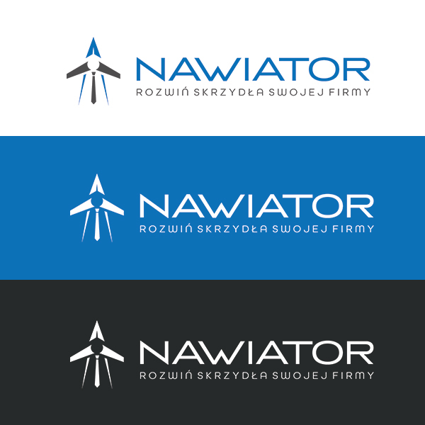 Przedstawiam trzecią propozycję, przedstawia kursor nawigacji połączony ze skrzydłami samolotu, w które wpleciony został element symbolizujący mężczyznę w garniturze.