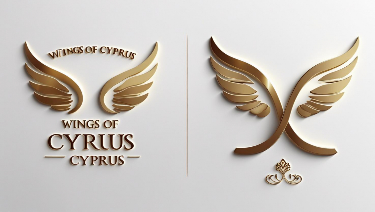 Spróbujmy zrobić tylko napis Wings of Cyprus pod skrzydłami . Wings po spodem mniejsze of i na dole Cyprus większe. Taka samą wersje zrobimy z drugim logo.