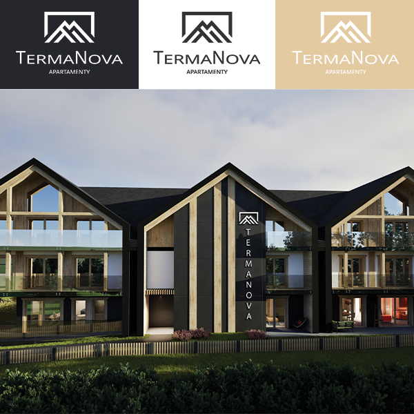 Witam, moja druga propozycja to logo z nawiązaniem do dachów dwuspadowych, oraz dodatkowo do wierzchołków gór. Logo proste, czytelne, nowoczesne, świetnie nadające się do umiejscowienia go na czarnej elewacji budynku, współgrając z drewnianymi elementami architektury. Logo rzuca się w oczy i jest czytelne dzięki czemu pewnie będzie budować swój wizerunek.