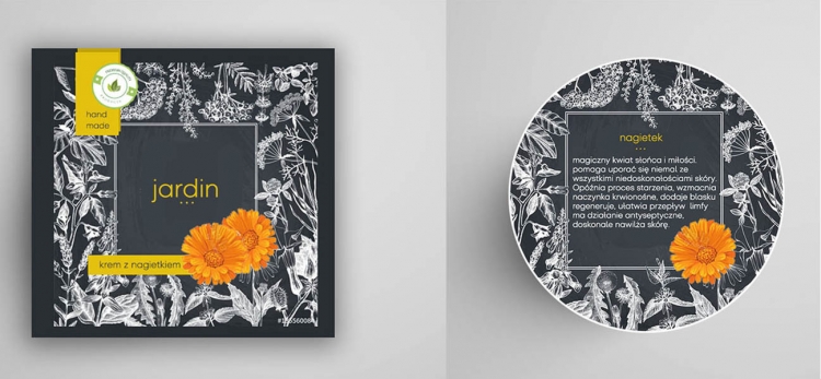 Projekt etykiety przedniej oraz wieczka. Mogę wykonać również jaśniejszą wersję w tej stylistyce.