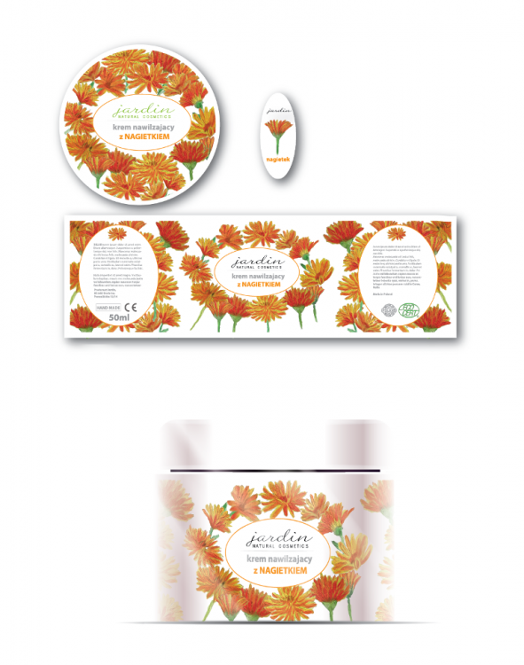 Ogród nagietkowy, malowany akrylami, podkreślający swieżość i natulaność produktu.