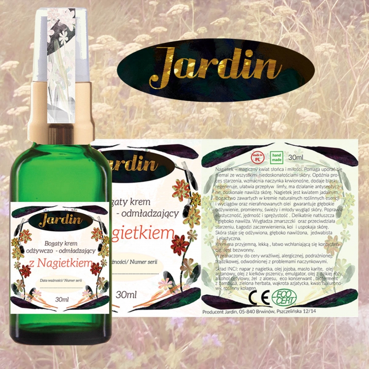 Logo i etykieta dla kremu do twarzy z nagietkiem