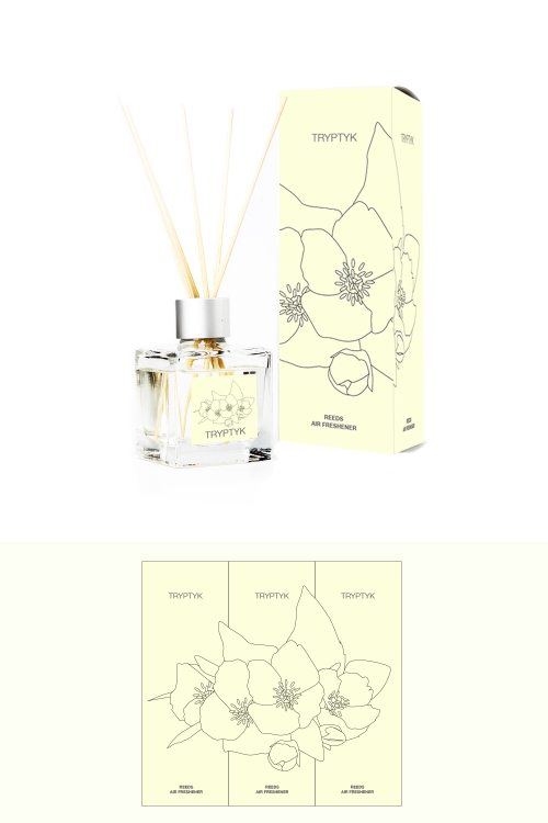 Pudełko i etykieta na opakowanie odświeżacza - patyczki zapachowe - Tryptyk