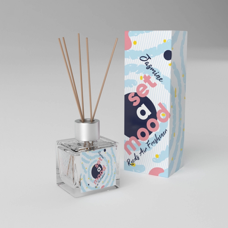 Pudełko i etykieta na opakowanie odświeżacza - patyczki zapachowe - Set a mood