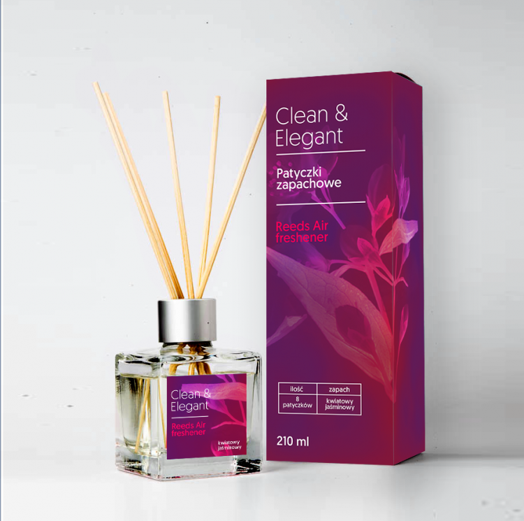 Pudełko i etykieta na opakowanie odświeżacza - patyczki zapachowe - Clean & Elegant