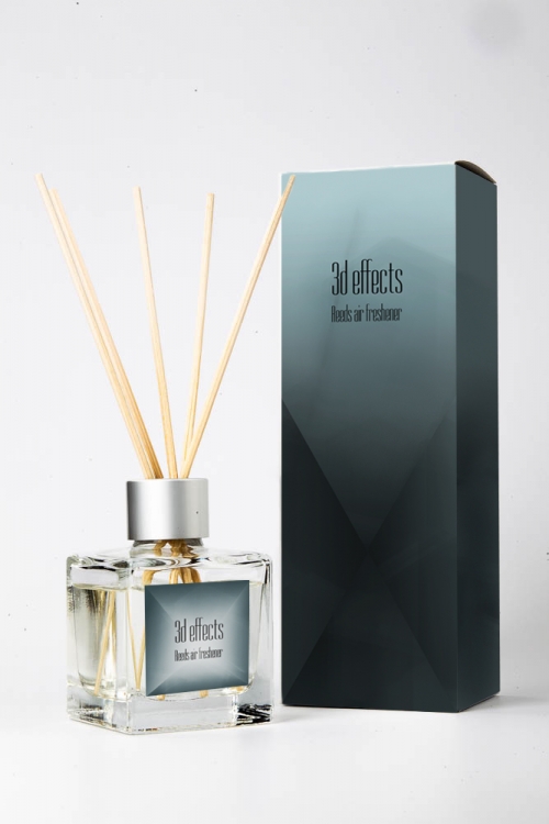 Pudełko i etykieta na opakowanie odświeżacza - patyczki zapachowe - 3D effects
