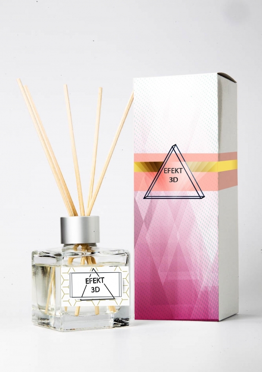 Pudełko i etykieta na opakowanie odświeżacza - patyczki zapachowe - 3D effects