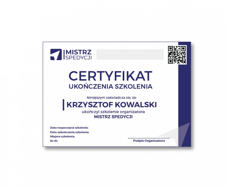Certyfikat ukończenia szkolenia