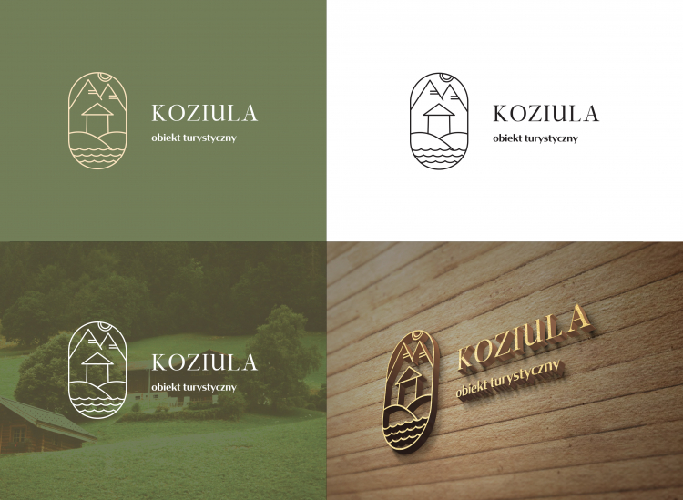 Logo to znak, nowoczesny sygnet przedstawiający domek w otoczeniu gór,wody,natury. Stonowane, spokojne kolory kojarzą się z odpoczynkiem w otoczeniu zieleni. Logo spójne z moją propozycją dla szkoły jazdy konnej