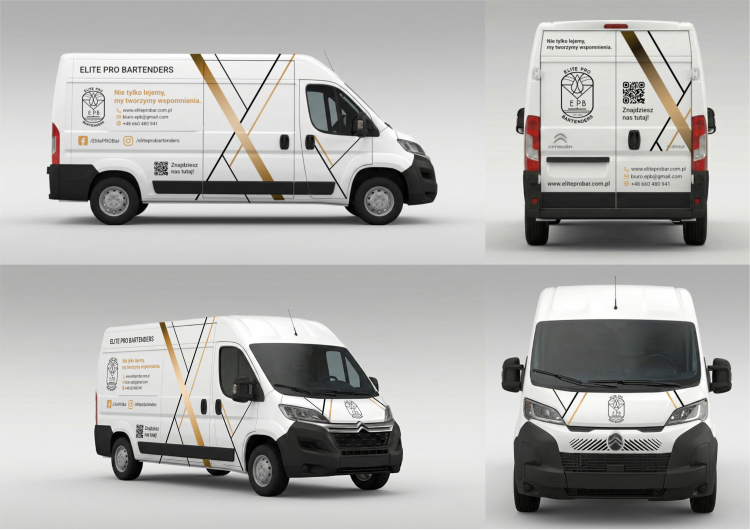 Witam :) Przedstawiam projekt okleiny na samochód. Wykorzystałem pomysł na grafikę z podanego przykładu oraz ułożyłem danę na samochodzie tak by zawierały wszystkie potrzebne informację w jak najbardziej przystępny sposób dla osoby przyglądającej się samochodowi czy to na parkingu czy podczas jazdy za samochodem. Proszę dać znać czy projekt się podoba i czy widział by Pan zmiany, które by przypadły Panu do gustu. Jestem otwarty na propozycję. Również po ewentualnym wybraniu projektu w razie potrzeby bez problemu dostosuję grafikę pod wymagania firmy wykonującej okleinę.